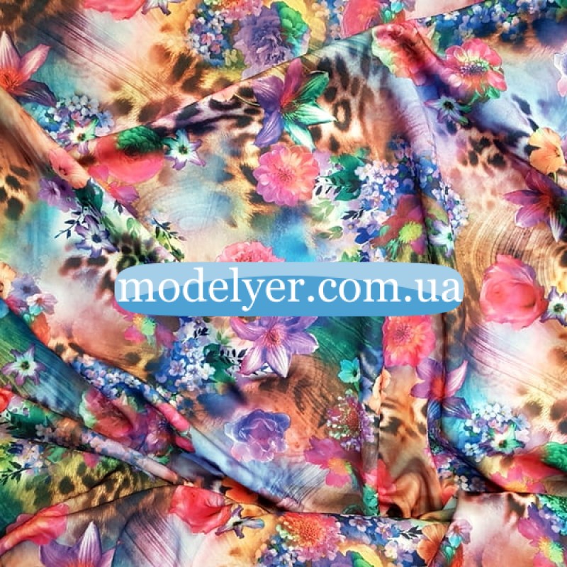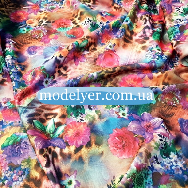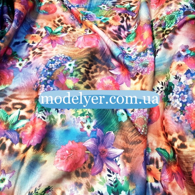 Ткань Дайвинг принт Цветы Леопард - это смесь полиэстера, лайкры и вискозы, обладающая свойствами, позволяющими шить из нее большой ассортимент спортивной и повседневной одежды. Ткань дайвинг используется в основном для пошива спортивных изделий, так как ткань дайвинг приятен на ощупь, эластичен и прекрасно сохраняет форму.